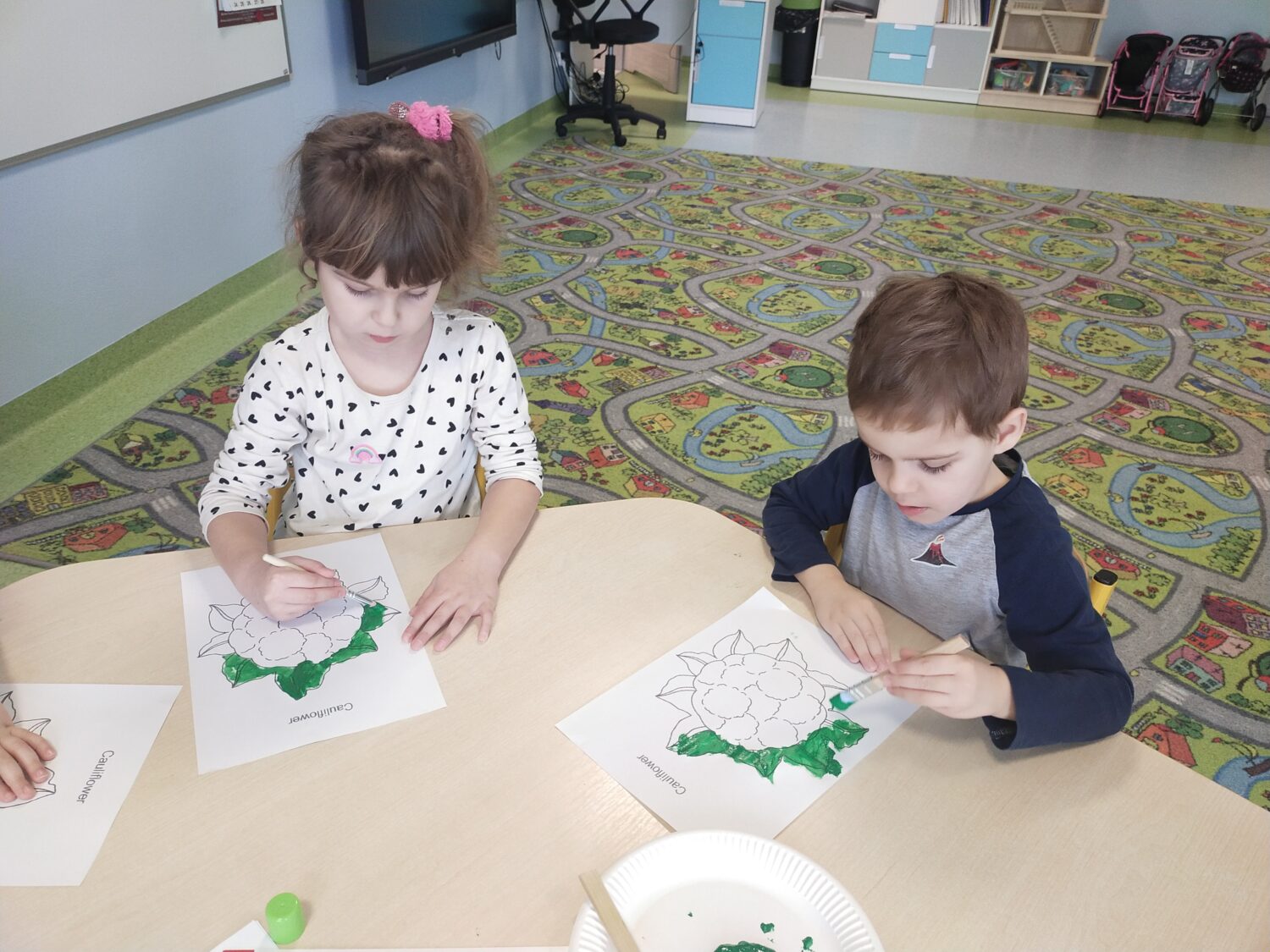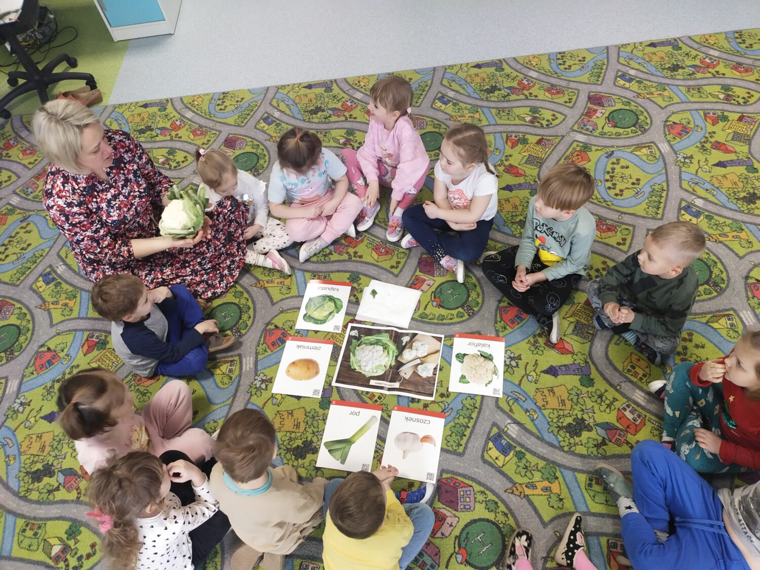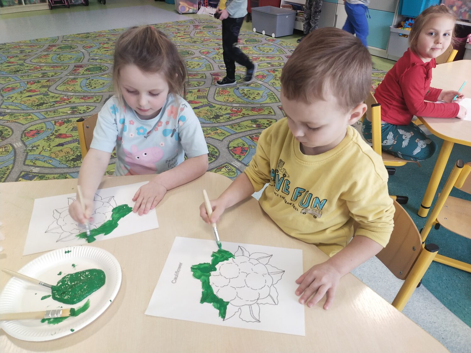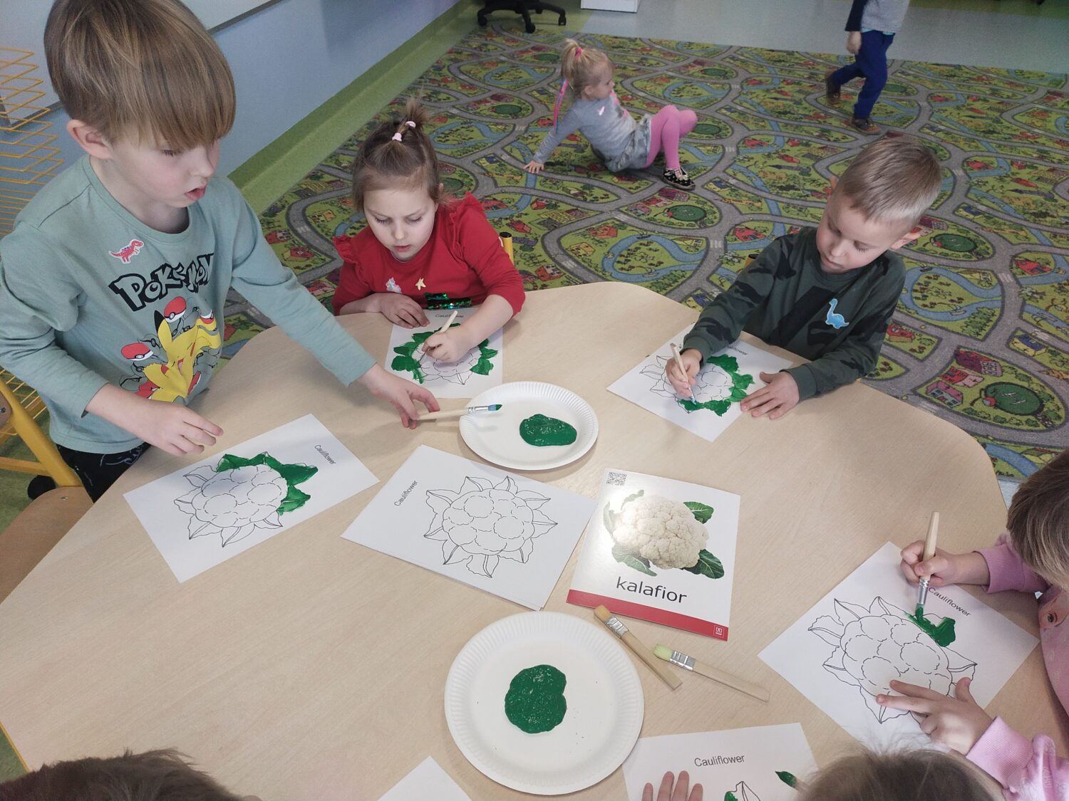 „Przed Wami stoi kalafior Kostek. Czy mnie już każde dziecko zna? Na co dzień jestem przyjazny gostek, Który o zdrowie Wasze dba!” Poznajemy nazwę kolejnego warzywa w języku angielskim – a cauliflower