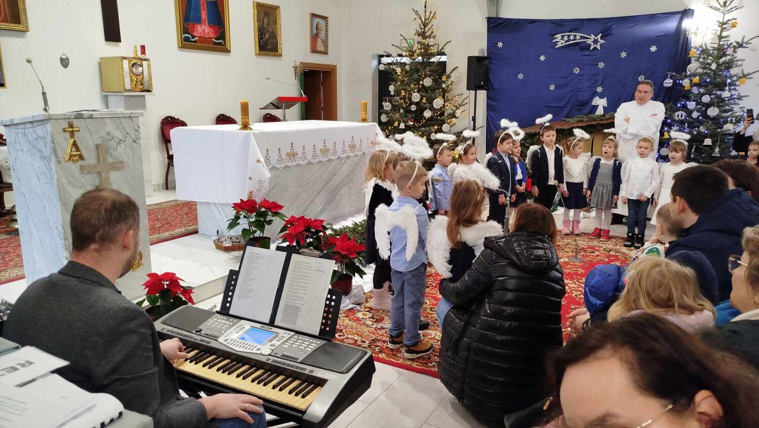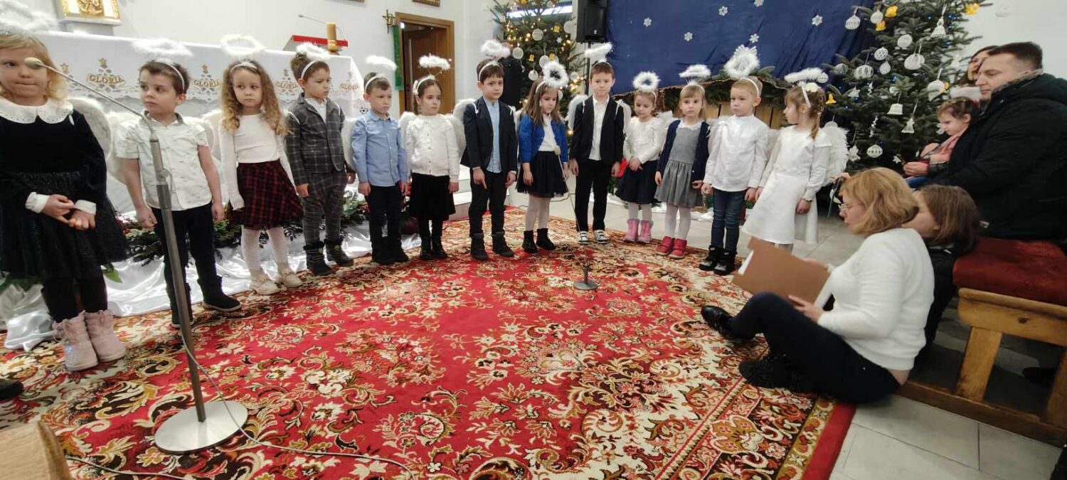 Dzieci pod kierunkiem pań: Magdaleny Lewickiej, Katarzyny Ostapiuk, Katarzyny Chreścionko i Elżbiety Beczek, przy akompaniamencie Taty jednego z przedszkolaków Pana Bartosza Remiszewskiego, przedstawiły wzruszający program artystyczny, w którym rozbrzmiały tradycyjne polskie kolędy i pastorałki.