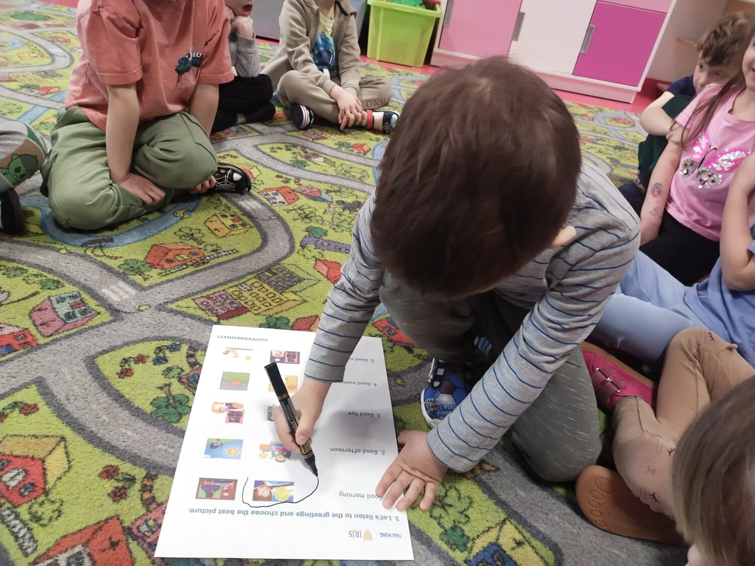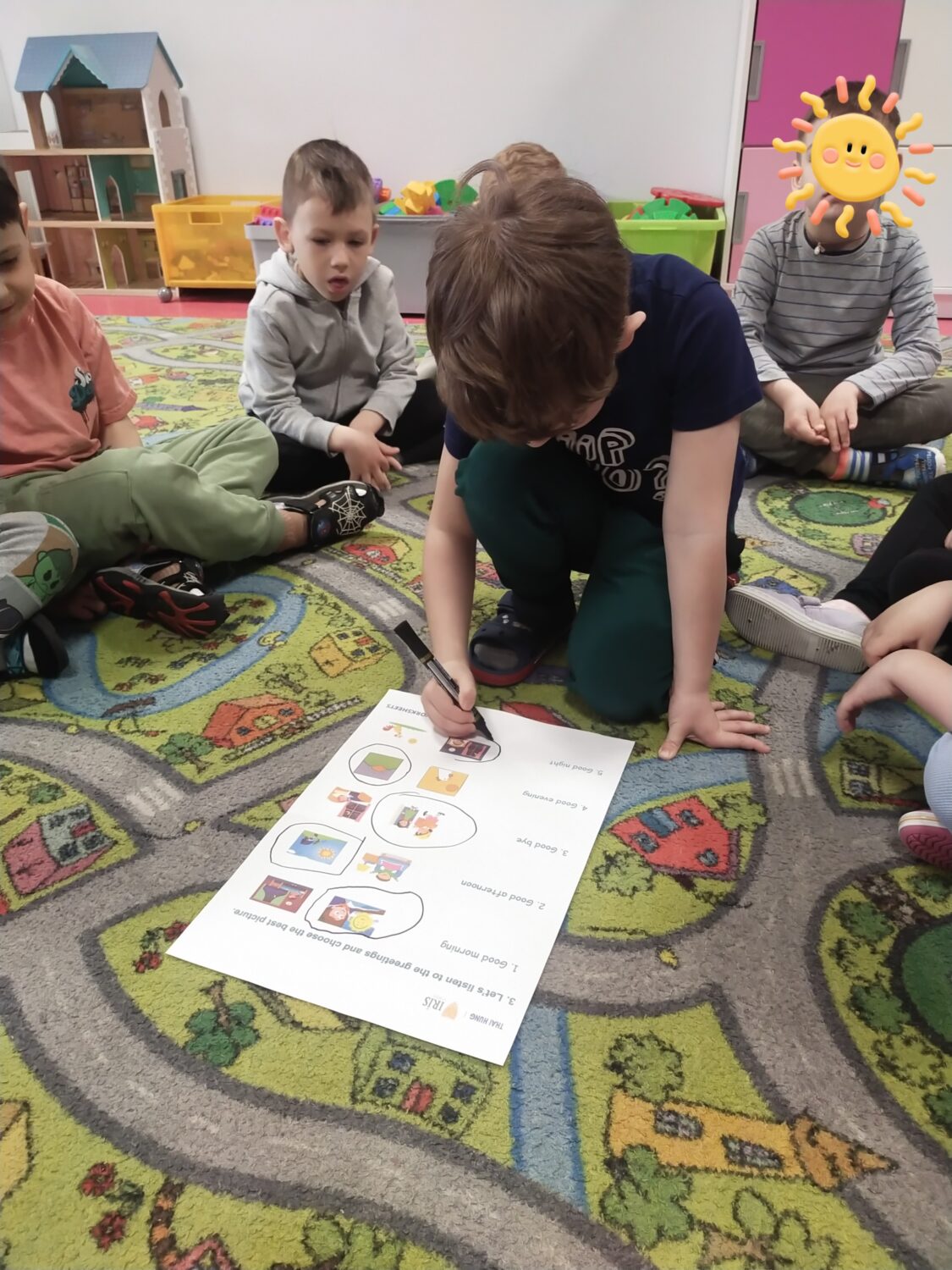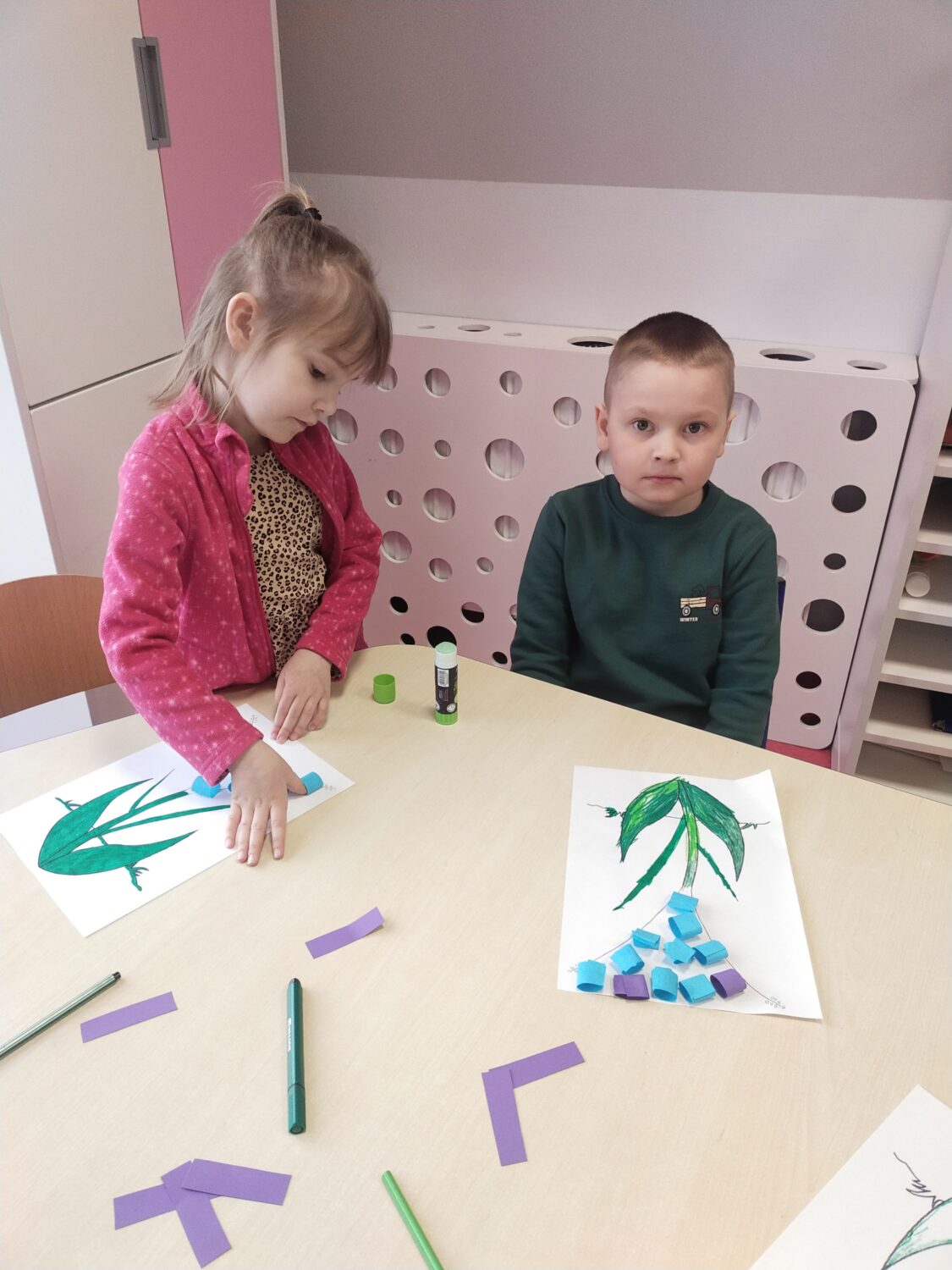 Uczymy się przedstawiać w języku angielskim, ćwicząc w parach frazy: „Hello! What’s your name? My name is… Nice to meet you”. Poznajemy także nazwy wiosennych kwiatów w języku angielskim 🌷 i wykonujemy jeden z nich – grape hyacinth 🪻