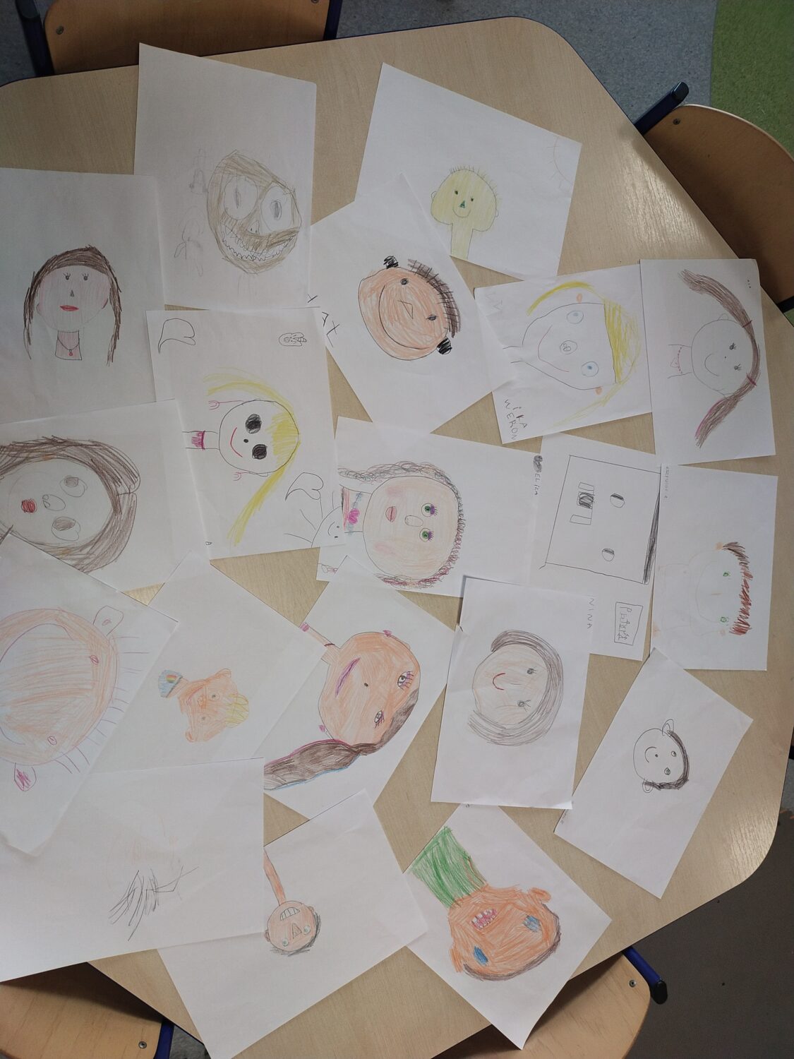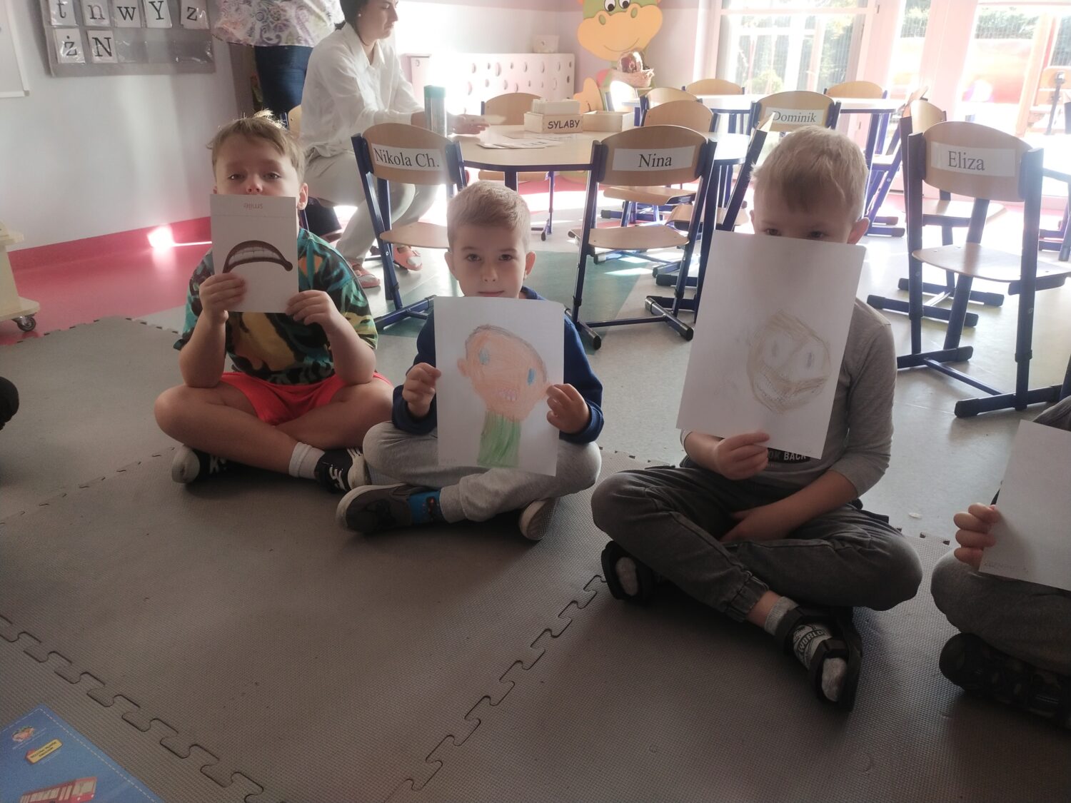 We draw our faces and sing the alphabet