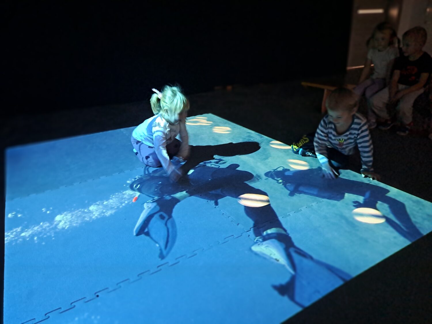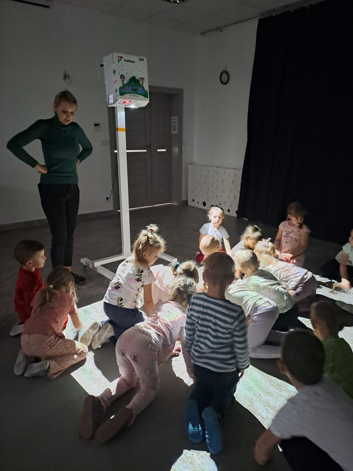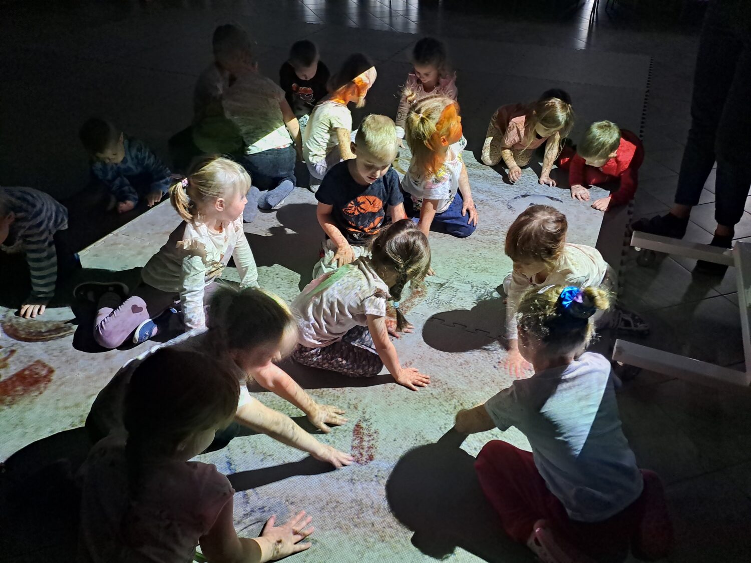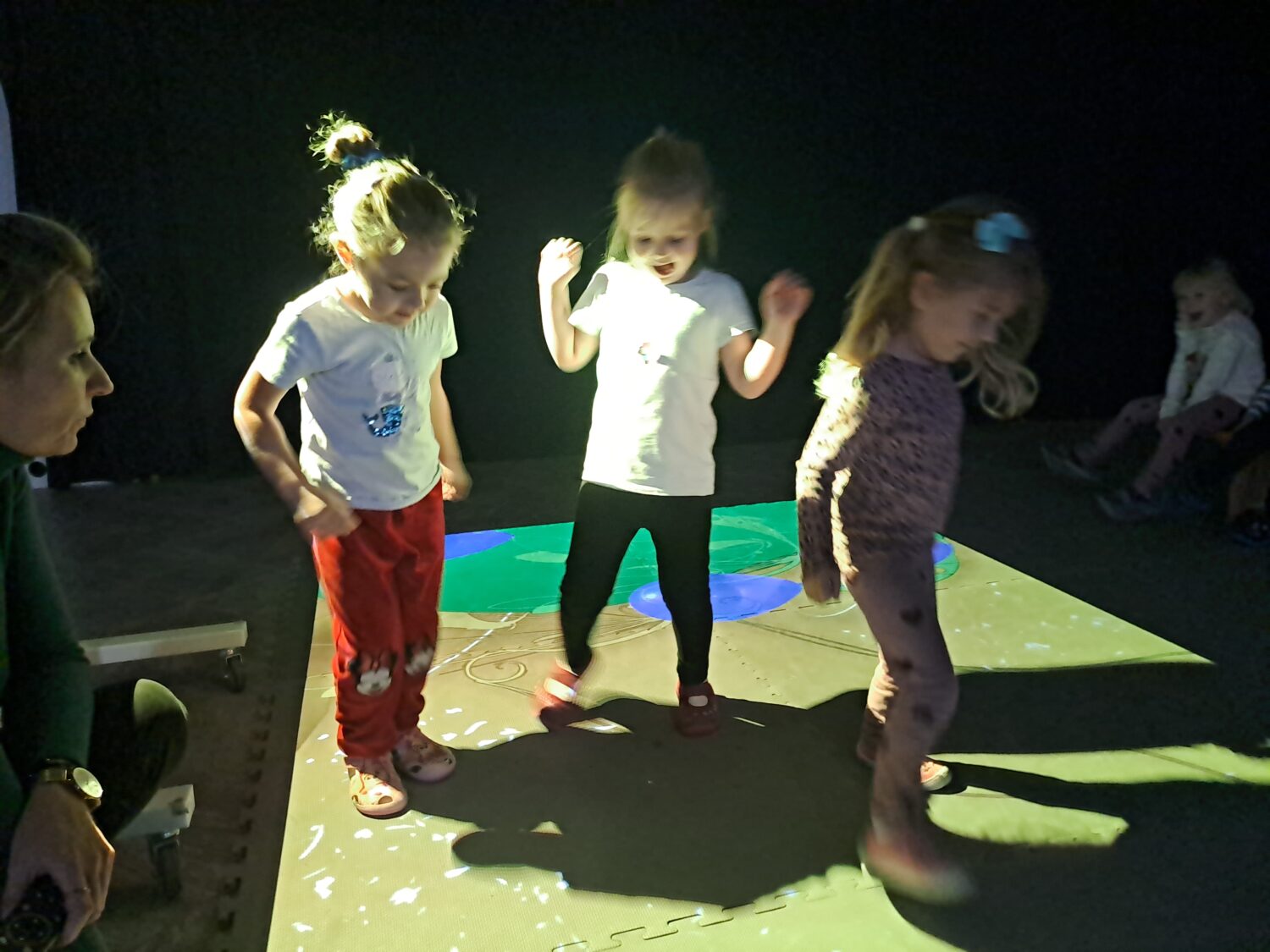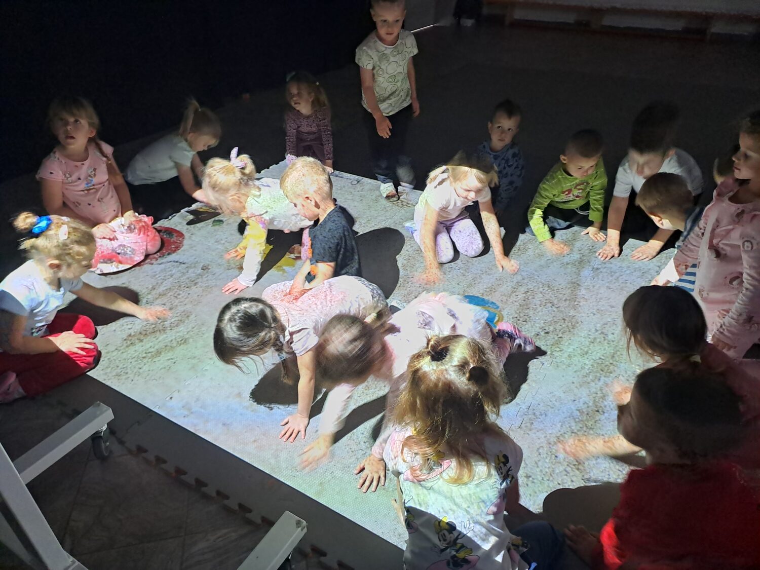 Grupa Motylki bawiła się na dywanie multimedialnym. Zabawa podobała się wszystkim przedszkolakom.