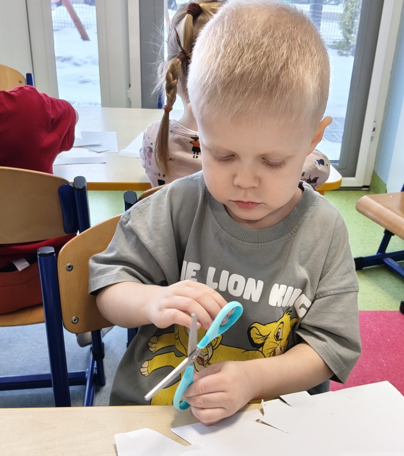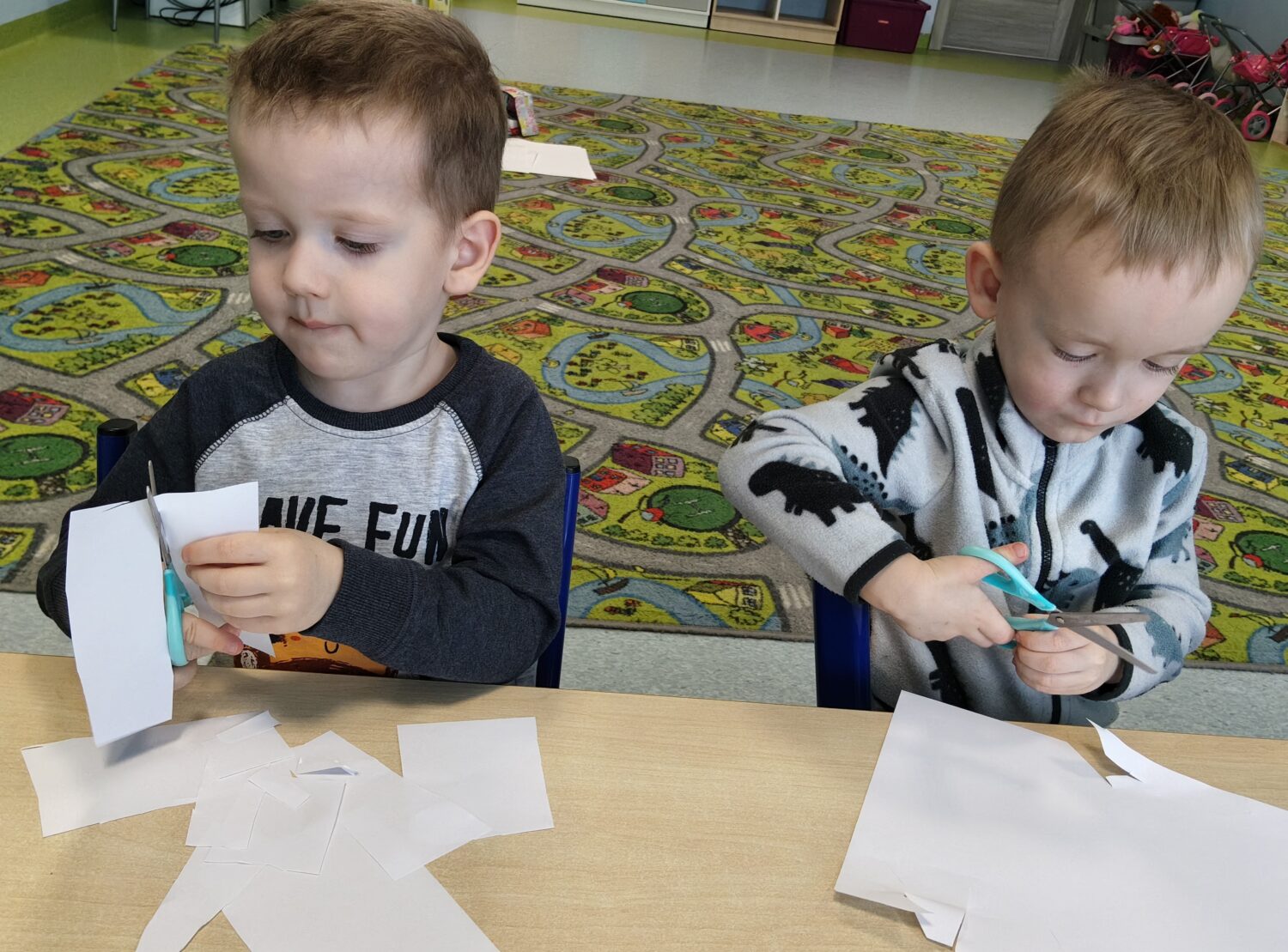 Misie poznają pierwsze etapy nauki wycinania nożyczkami.
