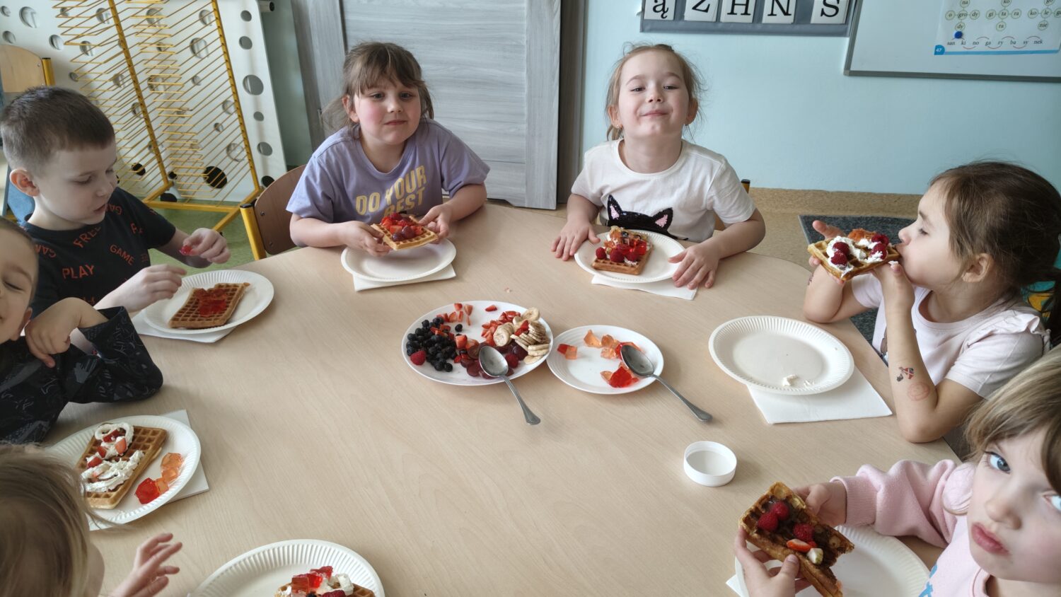 Dziękujemy pięknie dla pani Marty i pani Kingi za przygotowanie pysznych gofrów dla naszych ”Pszczółek”. :) :) :)
