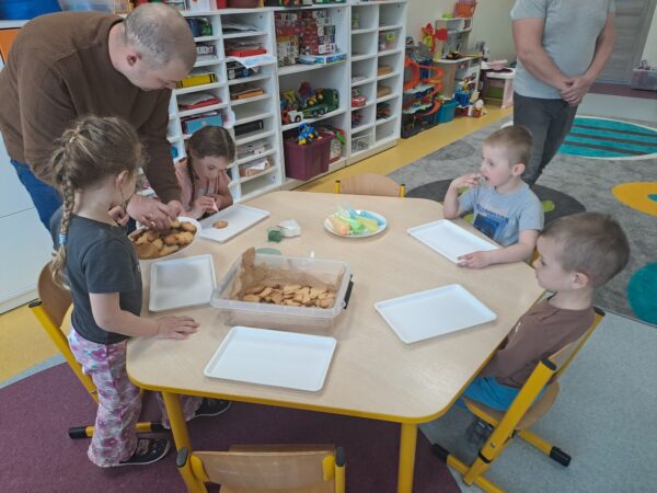 Motylki dekorowały ciasteczka Wielkanocne. Dziękujemy rodzicom za przygotowanie pysznych smakołyków.