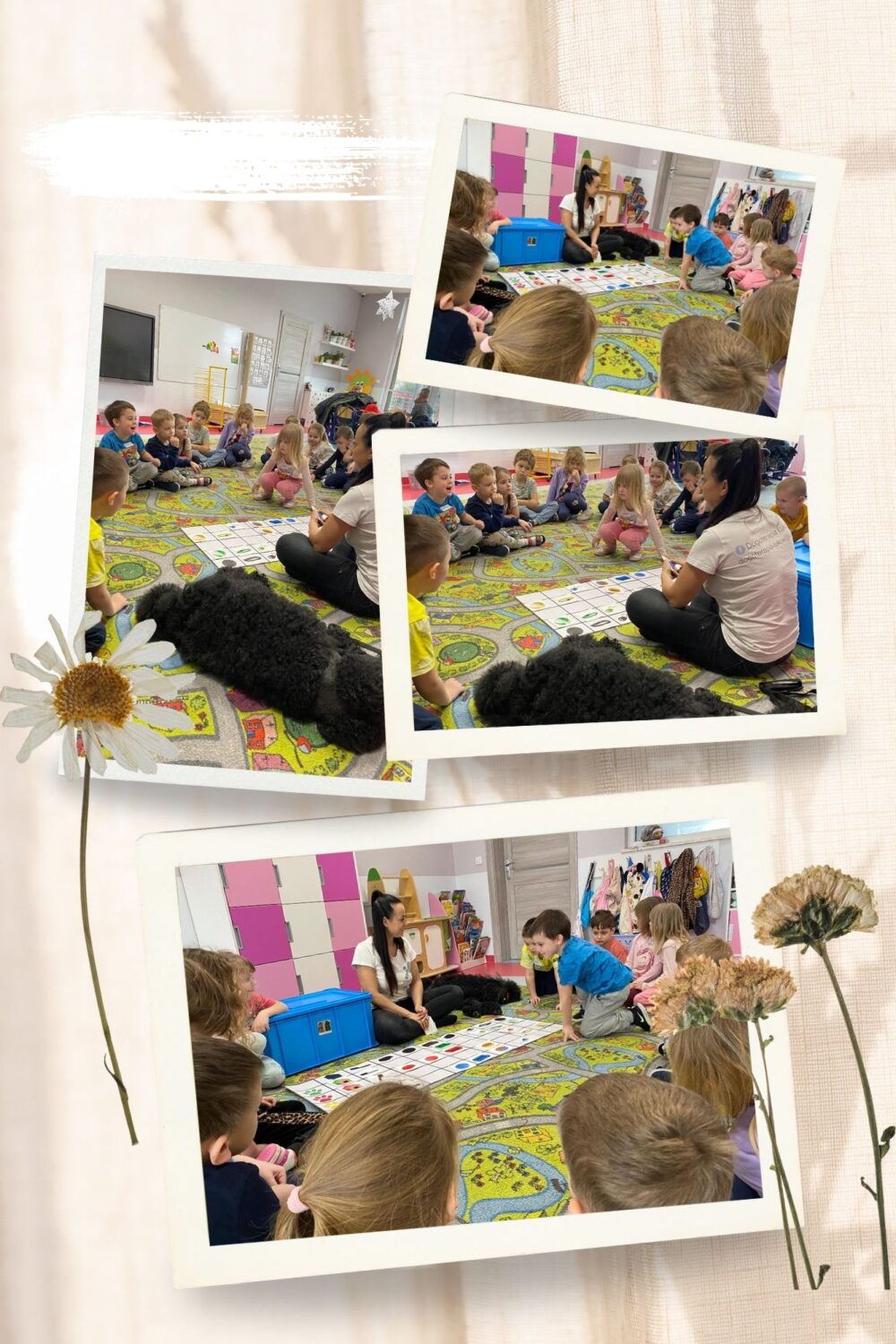 Kolejny raz odwiedziła nas Pani Monika wraz z Ami – drugim pieskiem z dogoterapii. Podczas zajęć dzieci mogły nakarmić, uczesać oraz pobawić się z psem.